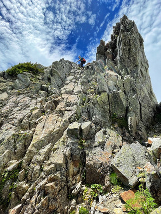 After pyramid peak the real fun begins and you'll slowly climb up and down the ridgeline until Nishihodaka. Estimate is 2-3h to get to Nishihodaka.